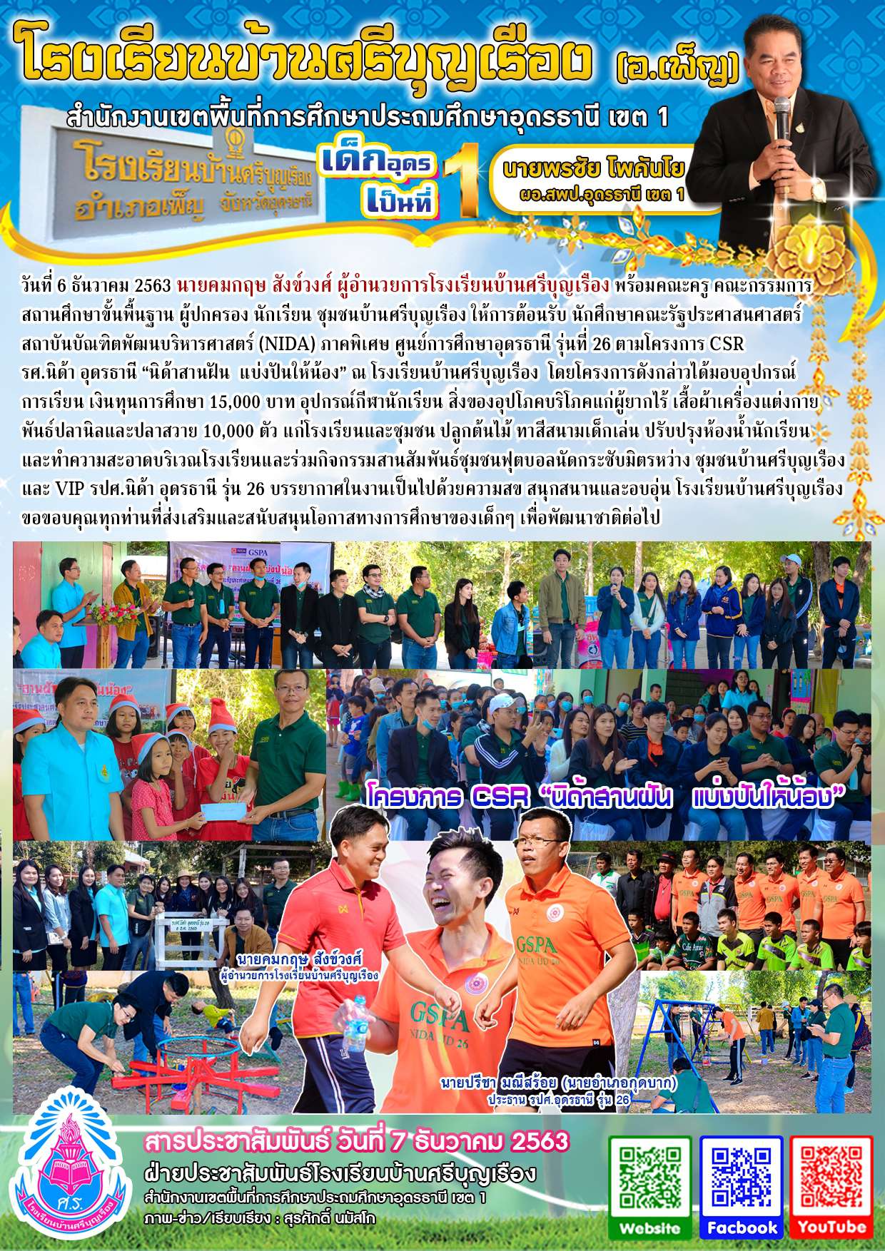โครงการ CSR รศ.นิด้า อุดรธานี ?นิด้าสานฝัน แบ่งปันให้น้อง? ณ โรงเรียนบ้านศรีบุญเรือง